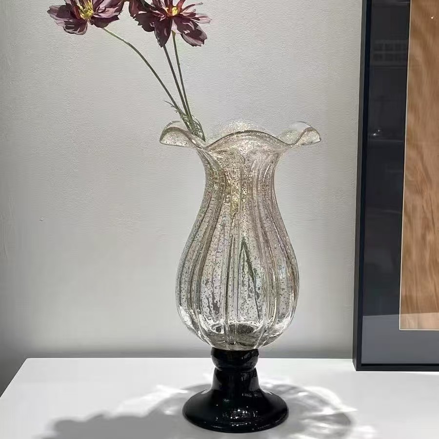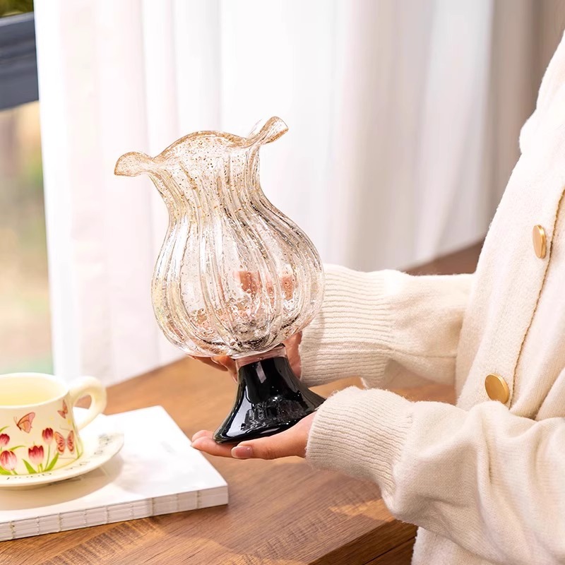 Nom du produit : grand vase en verre vintage de luxe saupoudré d'or.