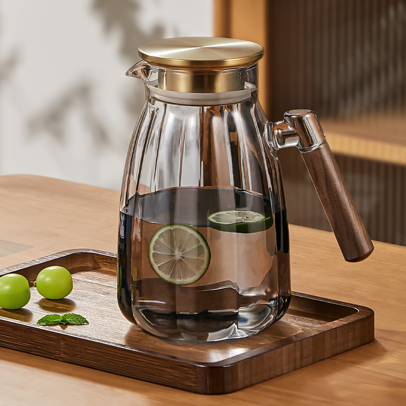 Nom du produit : pichet à eau en forme de citrouille avec poignée en noyer.